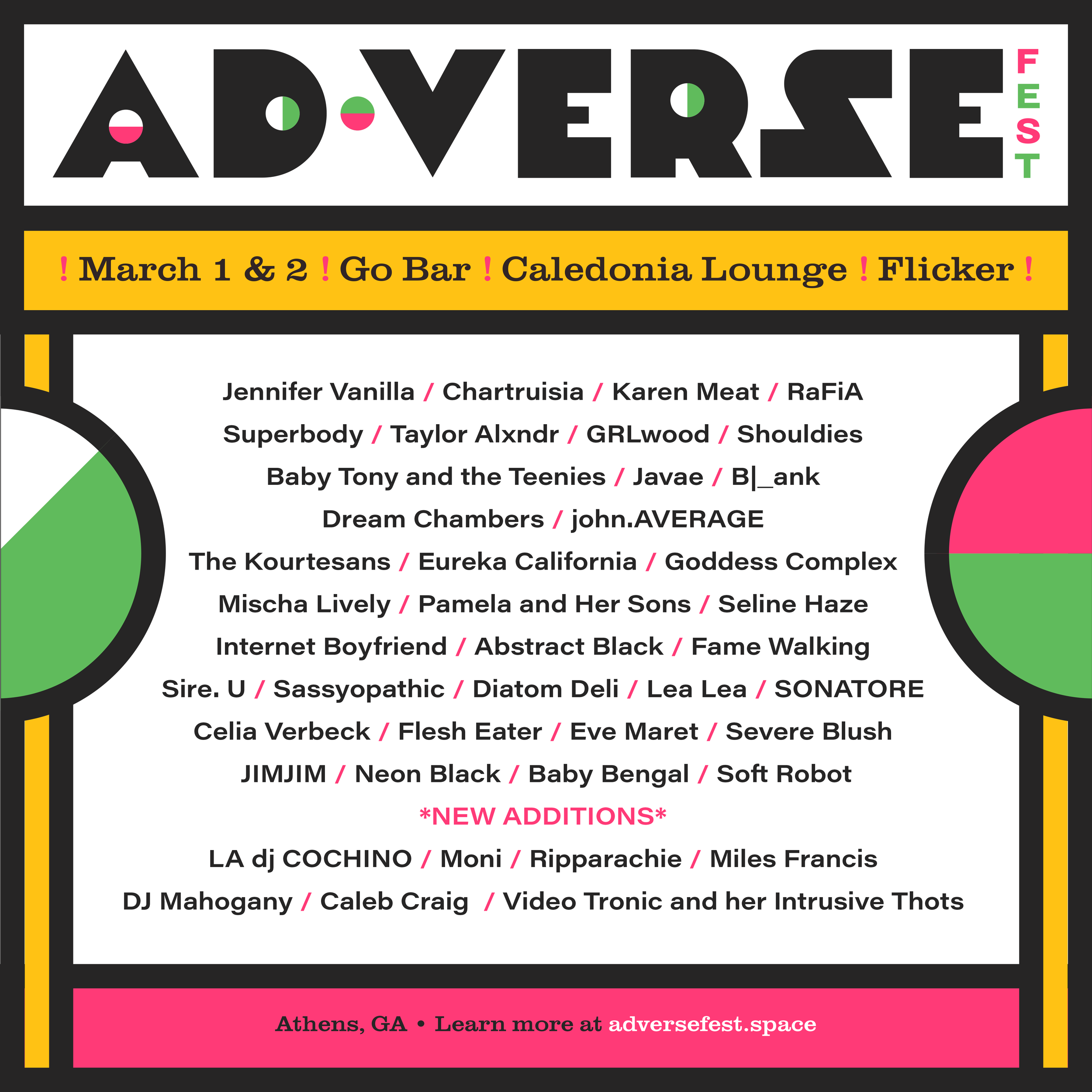 Established in 2019, ADVF was a two-day festival in Athens, GA during the first weekend in March showcasing a variety of solo and duo performers cross-genre. Its mission was not only to bridge the divide between music and art communities, but to also highlight artists most often left at the periphery.